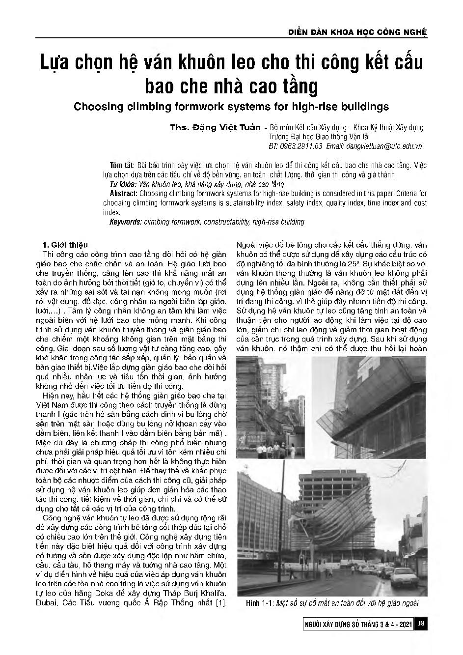 Lựa chọn hệ ván khuôn leo cho thi công kết cấu bao che nhà cao tầng