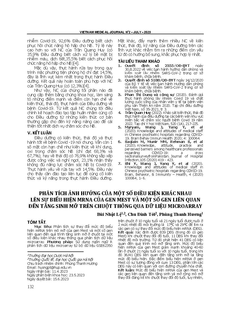 Phân tích ảnh hưởng của một số điều kiện khác nhau lên sự biểu hiện mRNA của gen Mest và một số gen liên quan đến tăng sinh mỡ trên chuột thông qua dữ liệu Microarray
