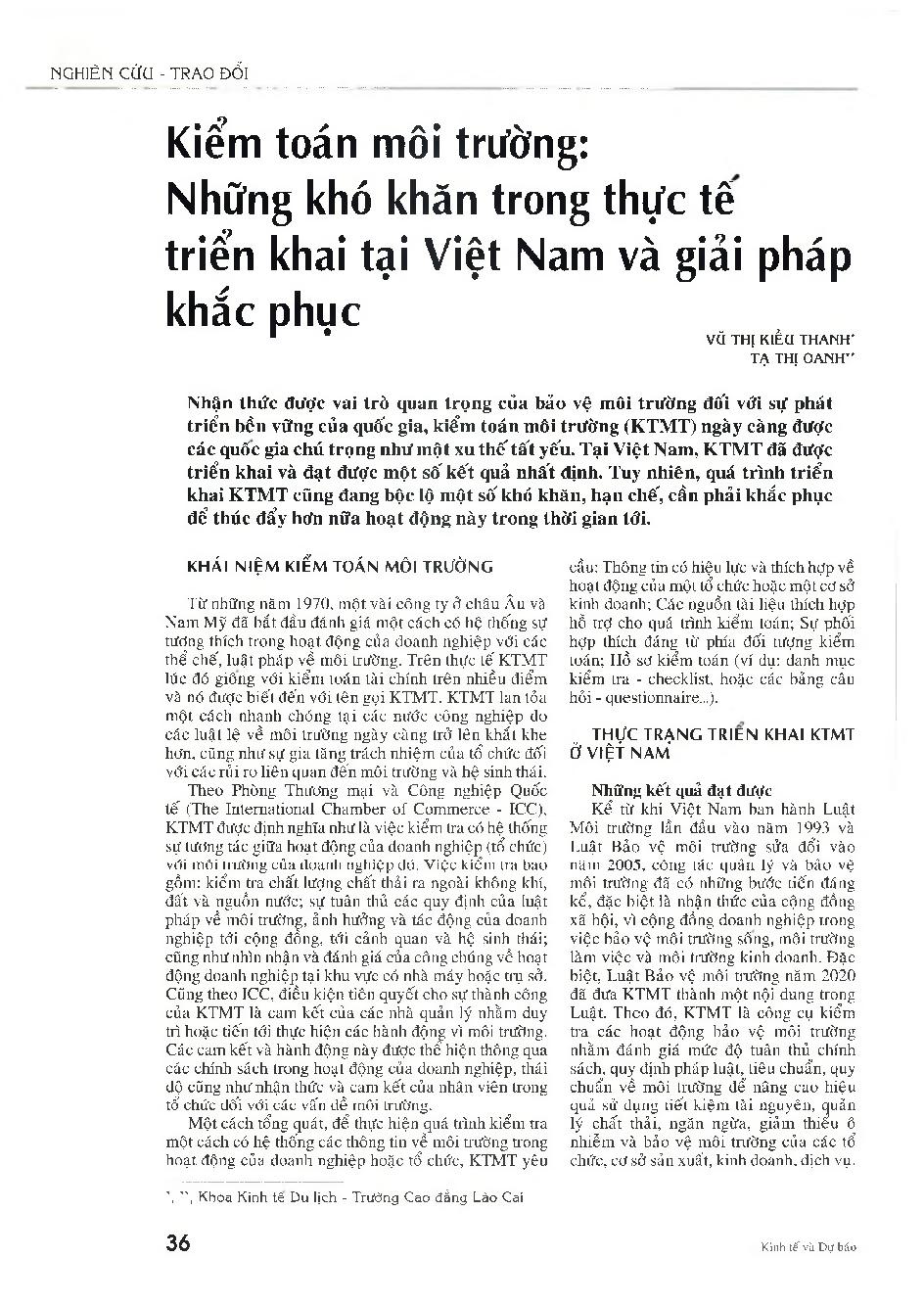 Tác giả: Vũ Thị Kiều Thanh; Tạ Thị Oanh;