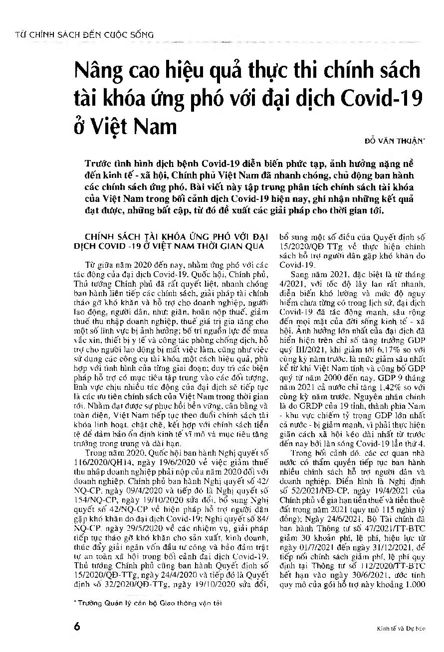 Nâng cao hiệu quả thực thi chính sách tài khóa ứng phó với đại dịch Covid-19 ở Việt Nam