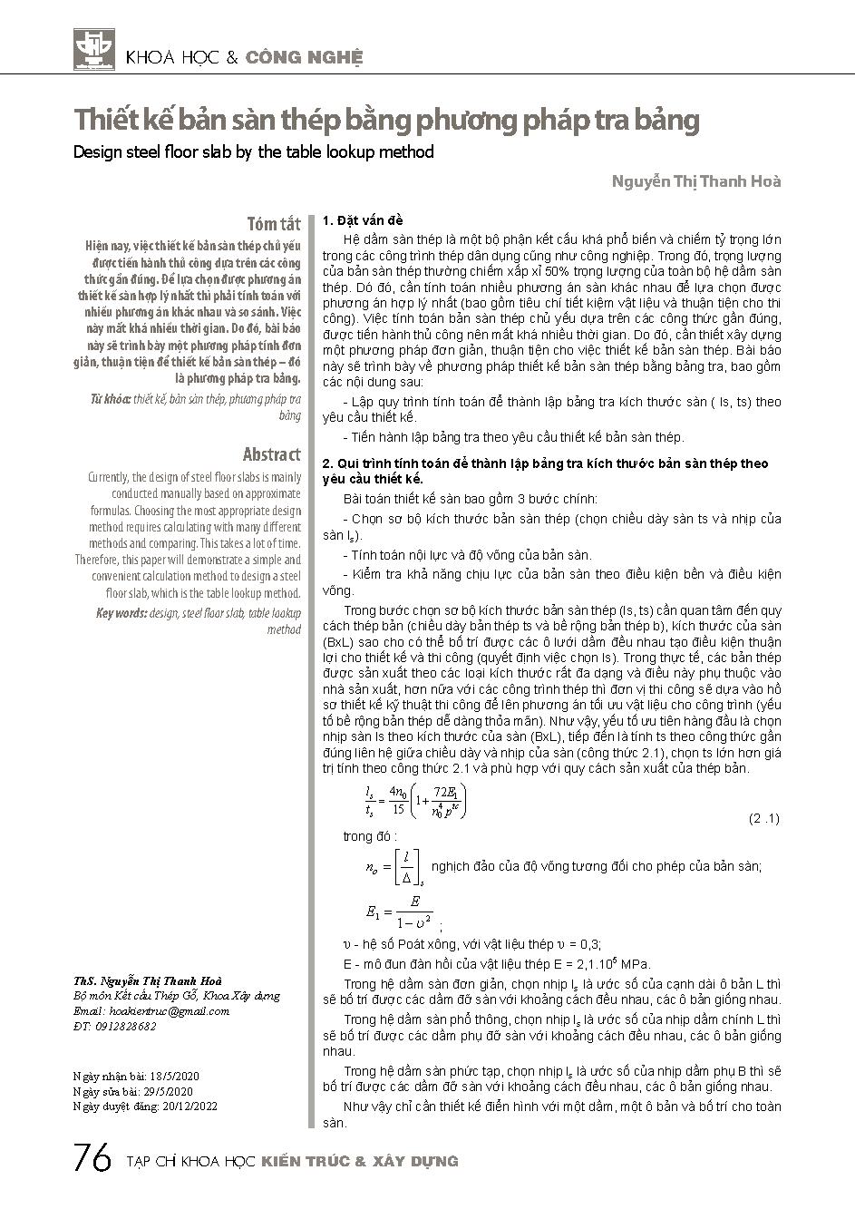 Thiết kế bản sàn thép bằng phương pháp tra bảng = Design steel floor slab by the table lookup method