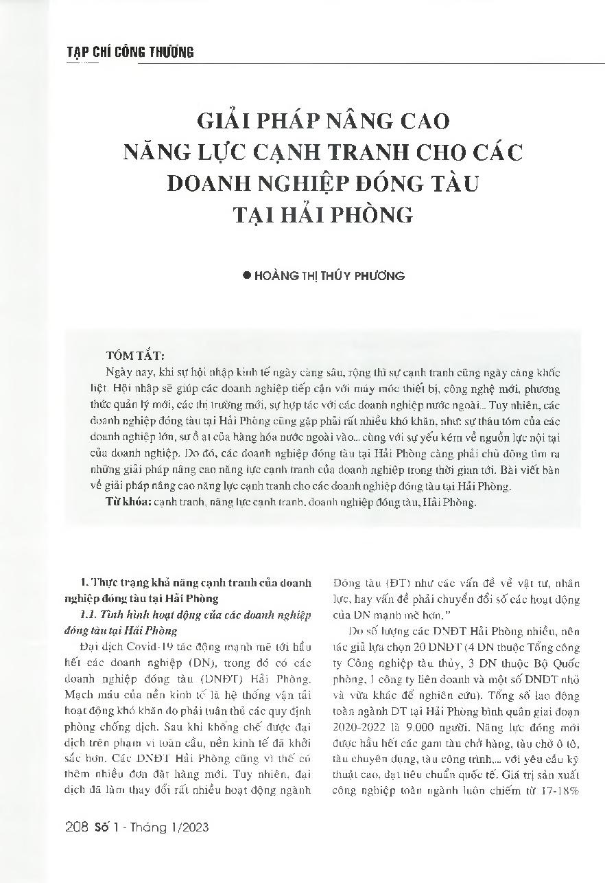 Giải pháp nâng cao năng lực cạnh tranh cho các doanh nghiệp đóng tàu tại Hải Phòng = Solutions to improve the competitiveness of shipbuilding companies in Hal Phong city