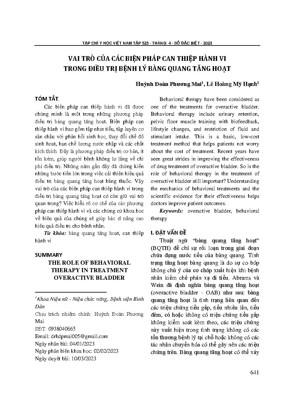 Vai trò của các biện pháp can thiệp hành vi trong điều trị bệnh lý bàng quang tăng hoạt