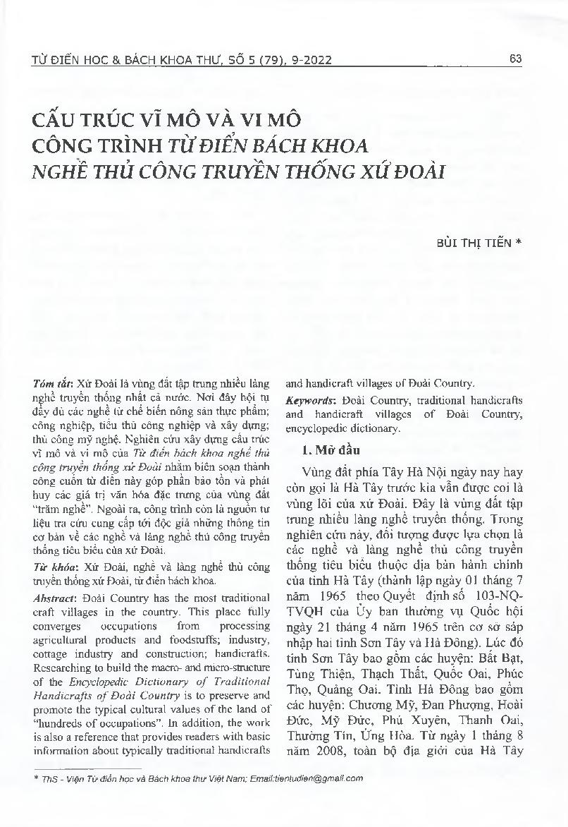 Cấu trúc vĩ mô và vi mô công trình từ điển bách khoa nghề thủ công truyền thống xứ Đoài = Macro and micro structure of works encyclopedia of traditional crafts of Doai