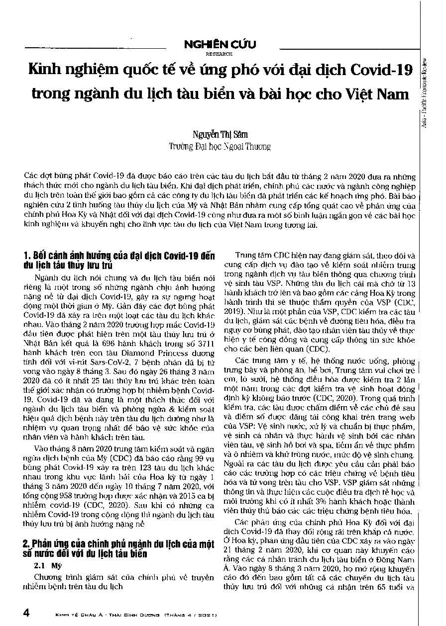 Kinh nghiệm quốc tế về ứng phó với đại dịch Covid-19 trong ngành du lịch tàu biền và bài học cho Việt Nam