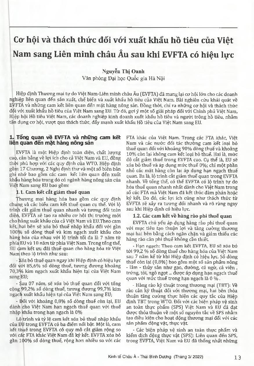 Cơ hội và thách thức đối với xuất khẩu hồ tiêu của Việt Nam sang Liên minh châu Âu sau khi EVFTA có hiệu lực