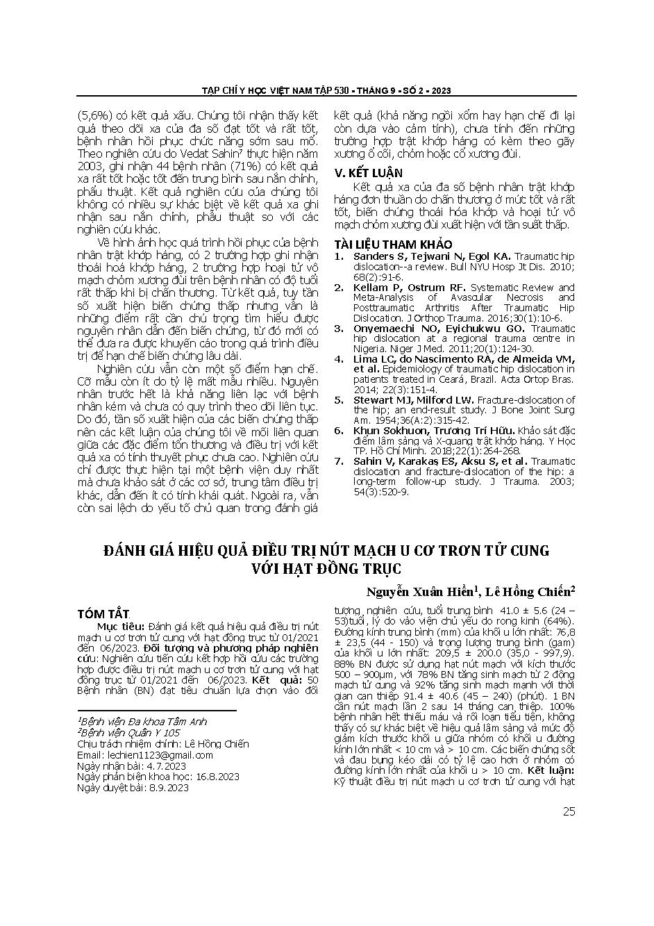 Đánh giá hiệu quả điều trị nút mạch u cơ trơn tử cung với hạt đồng trục = Evaluating the effectiveness of uterine fibroid embolization with microspheres coaxial