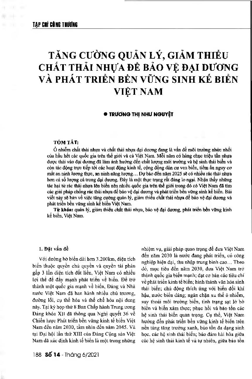 Tăng cường quản lý, giảm thiểu chất thải nhựa đế bảo vệ đại dương và phát triển bền vững sinh kế biến Việt Nam = Strengthening the plastic waste reduction and management to protect the oceans and sustainably develop marine livelihoods in Vietnam