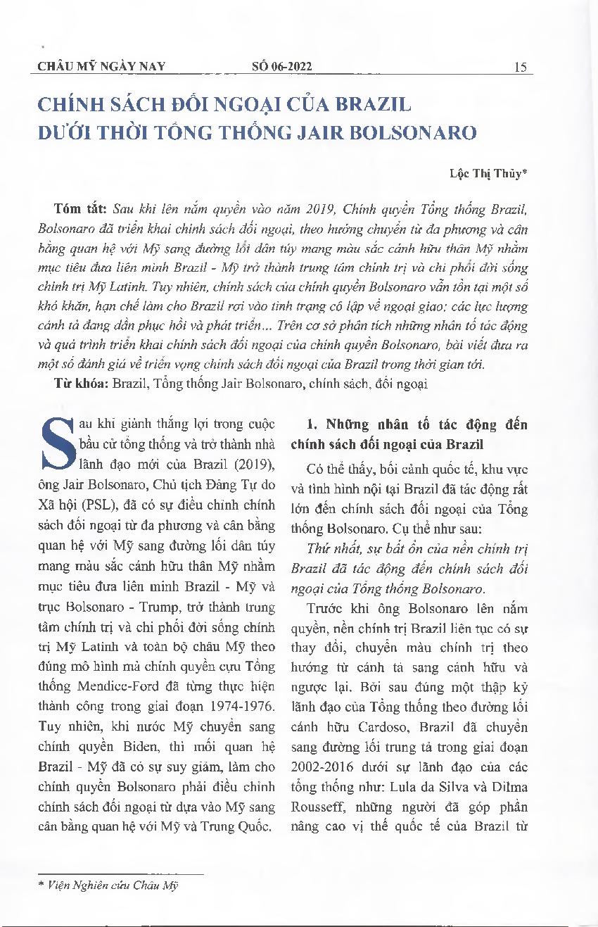 Chính sách đối ngoại của Brazil 15 dưới thời Tổng thống Jair Bolsonaro