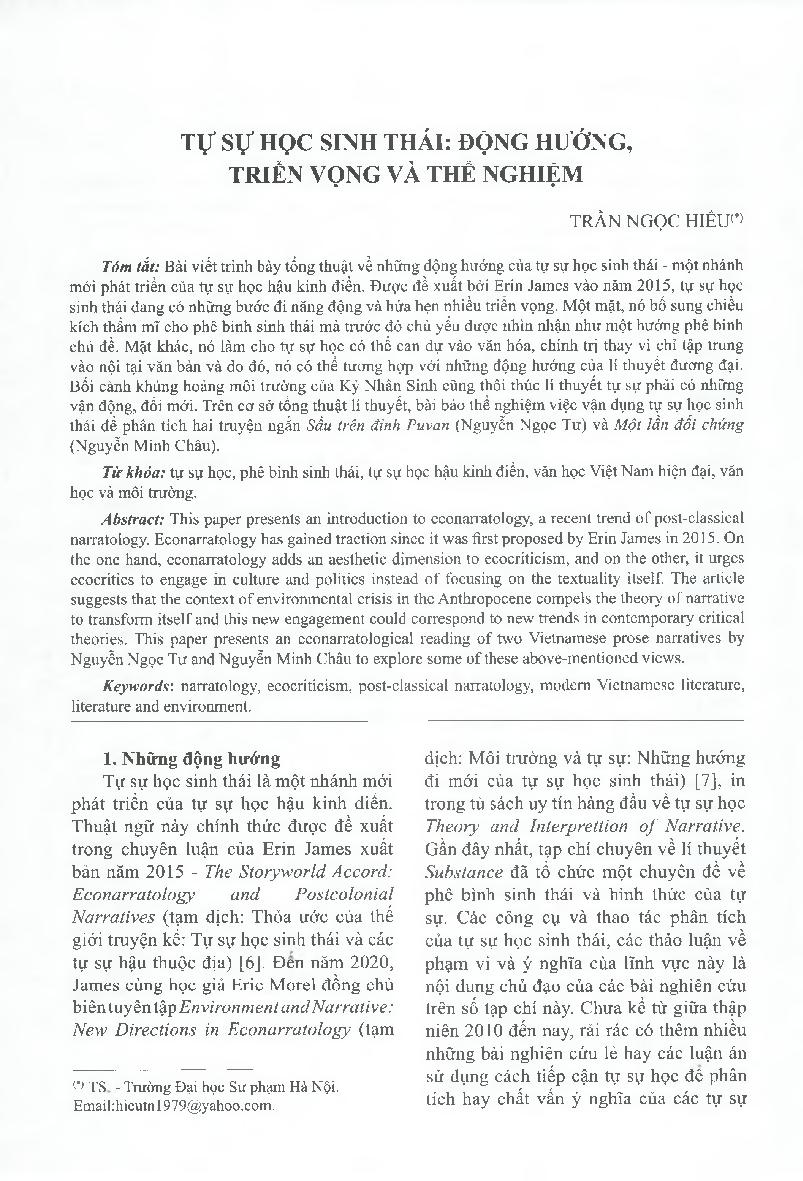 Tự sự học sinh thái: động hướng, triển vọng và thể nghiệm = Econarratology: Movements, prospects, and experiments