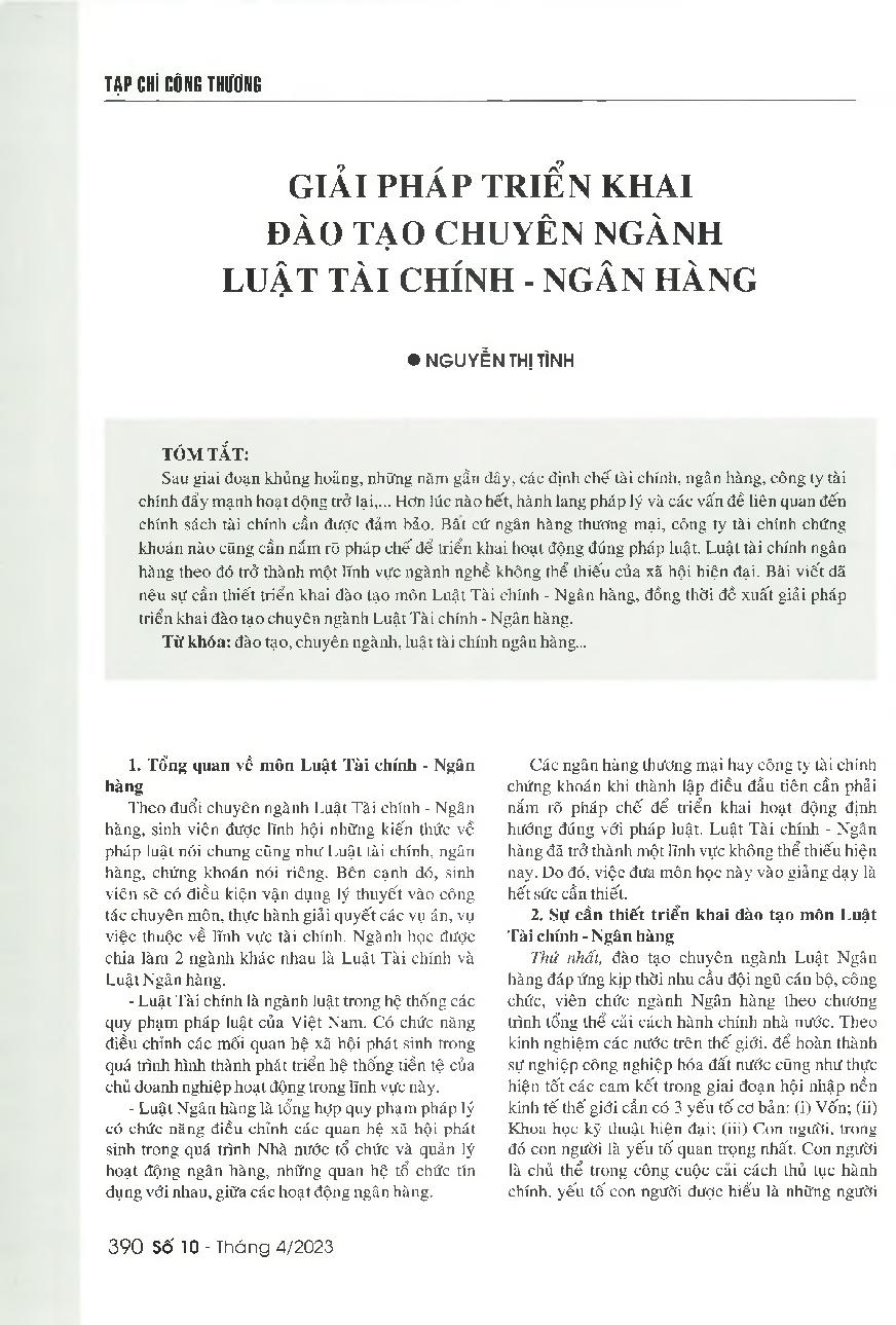 Giải pháp triển khai đào tạo chuyên ngành Luật Tài chính - Ngân hàng