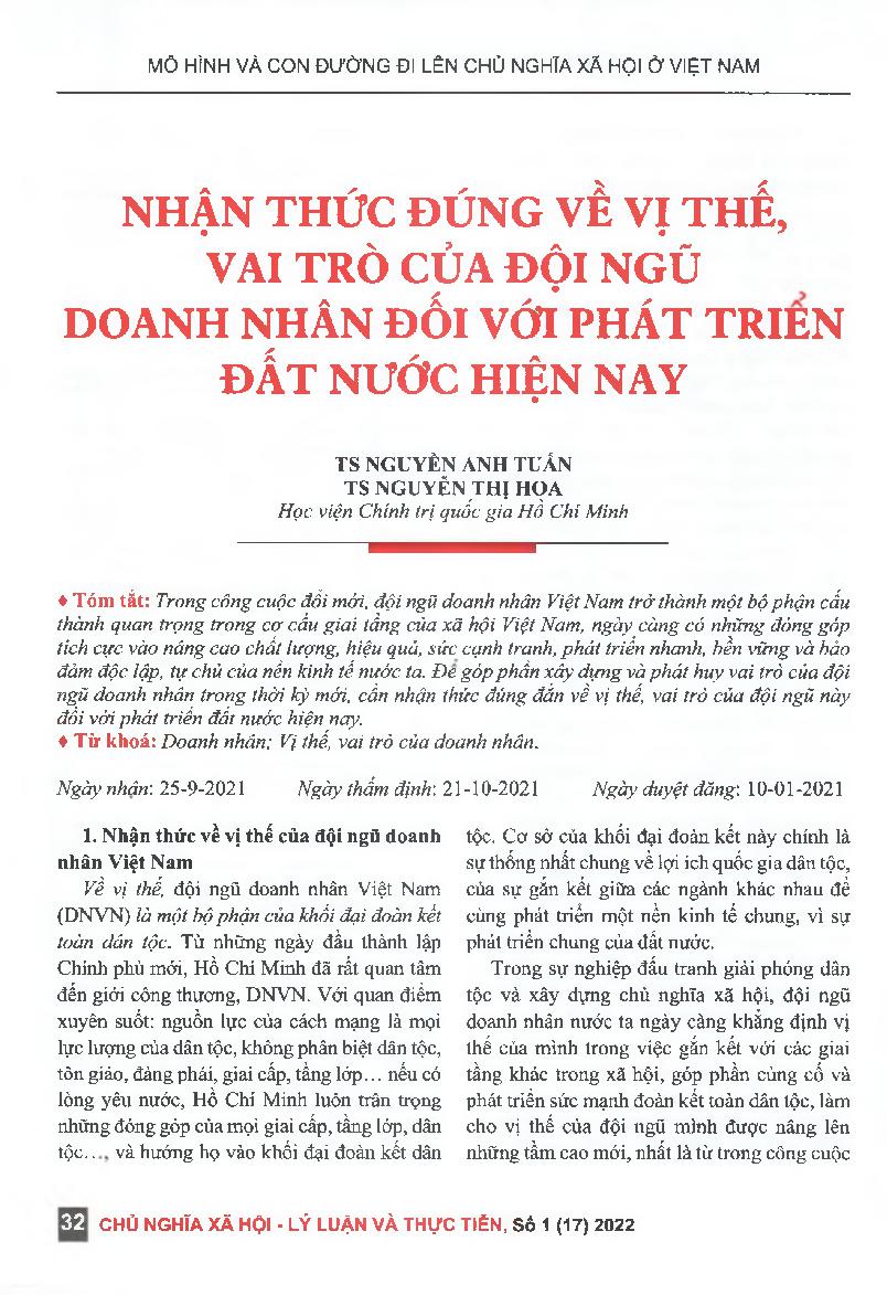 Nhận thức đúng về vị thế vai trò của đội ngũ doanh nhân đối với phát triển đất nước hiện nay