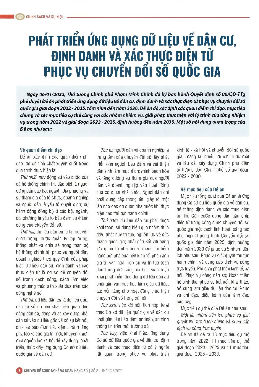 Phát triển ứng dụng dữ liệu về dân cư, định danh và xác thực điện tử phục vụ chuyển đổi số quốc gia = Developing the application of data on population, identification and electronic authentication for national digital transformation