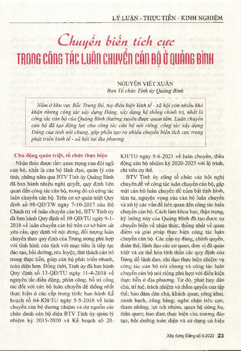Chuyển biến tích cực trong công tác luân chuyển cán bộ ở Quảng Bình = Positive changes in staff rotation in Quang Binh