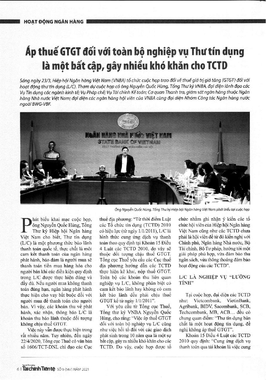 Áp thuế GTGT đối với toàn bộ nghiệp vụ Thư tín dụng là một bất cập, gây nhiều khó khăn cho TCTD
