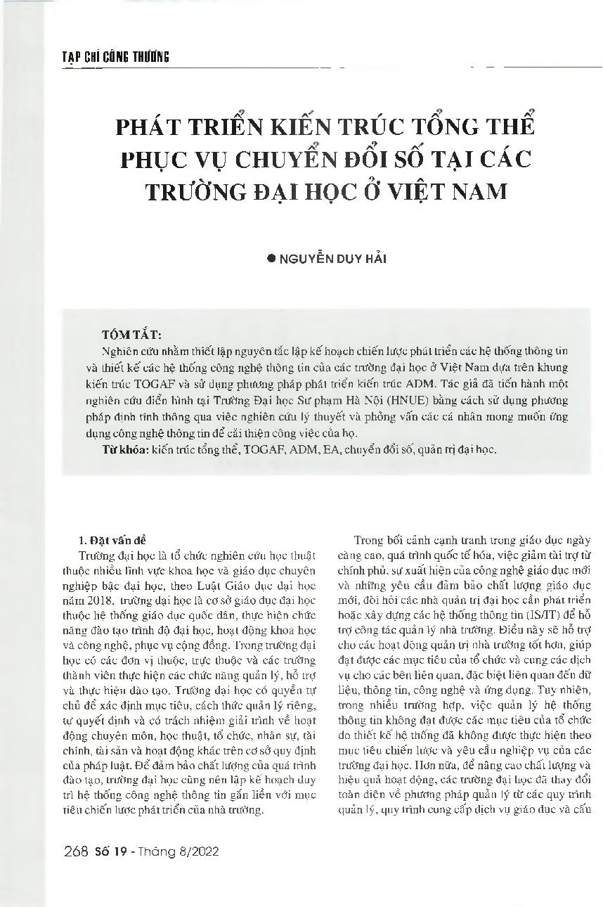 Phát triển kiến trúc tổng thể phục vụ chuyến đổi số tại các trường đại học ở Việt Nam = Developing the overall architecture for the digital transformation of universities in Vietnam