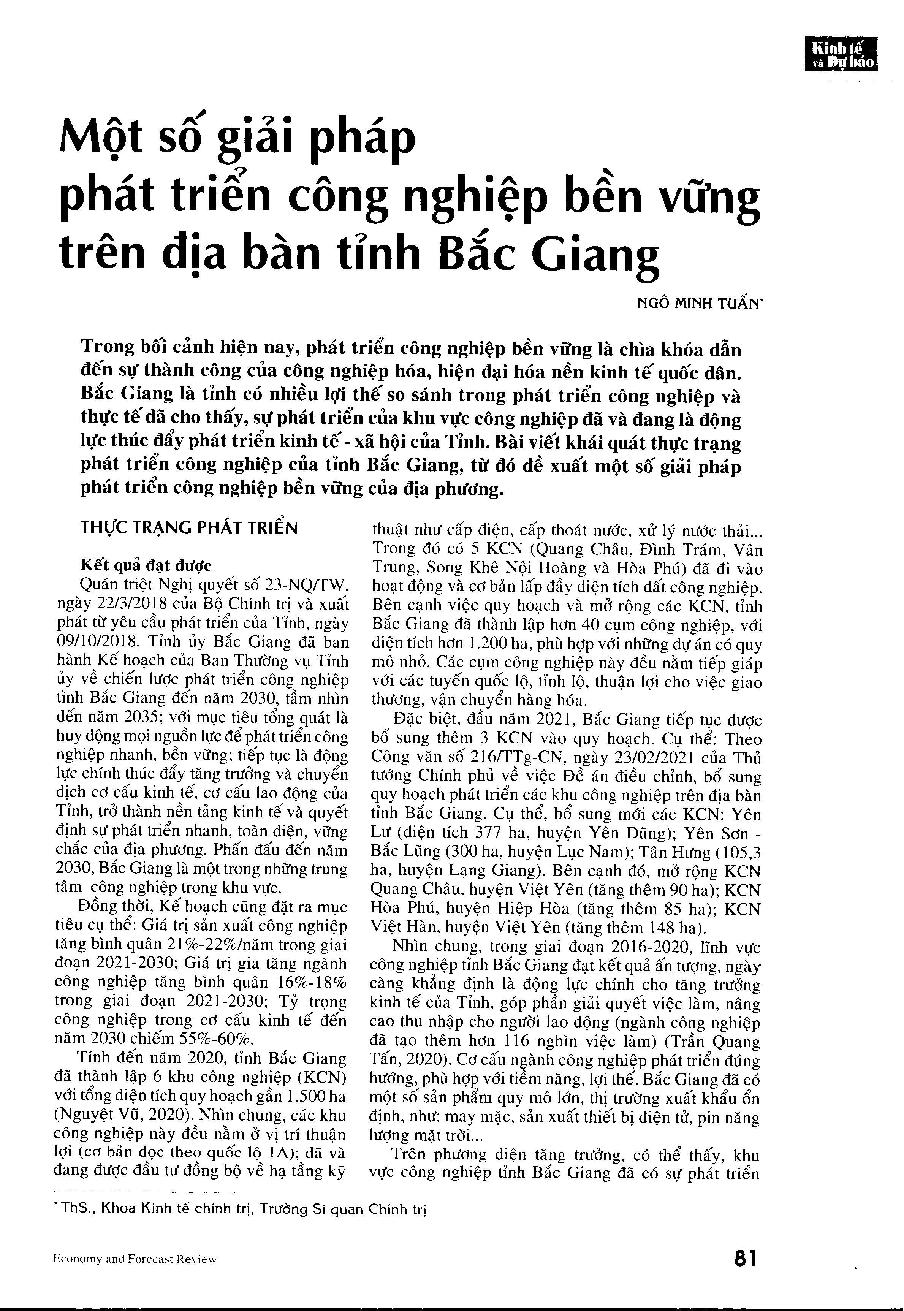 Một số giải pháp phát triển công nghiệp bền vững trên địa bàn tỉnh Bắc Giang