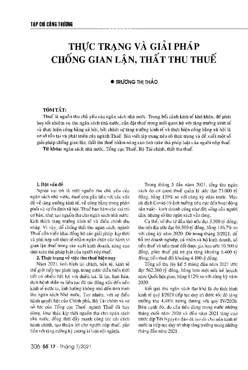 Thực trạng và giải pháp chống gian lận, thất thu thuế tại Việt Nam = Current situation of tax collection and solutions to fight against tax evasion and tax fraud
