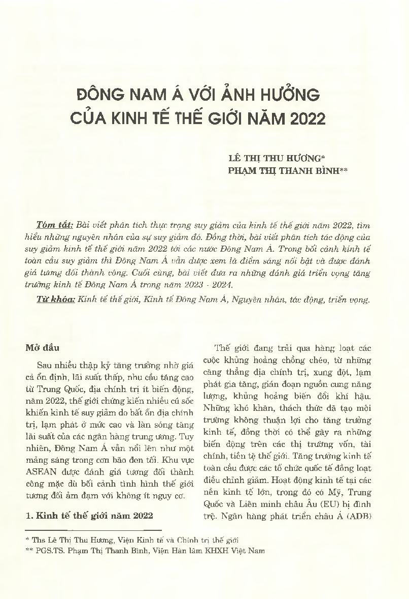 Đông Nam Á với ảnh hưởng của kinh tế thế giới năm 2022 = Southeast Asia with the Influence of the World Economy in 2022