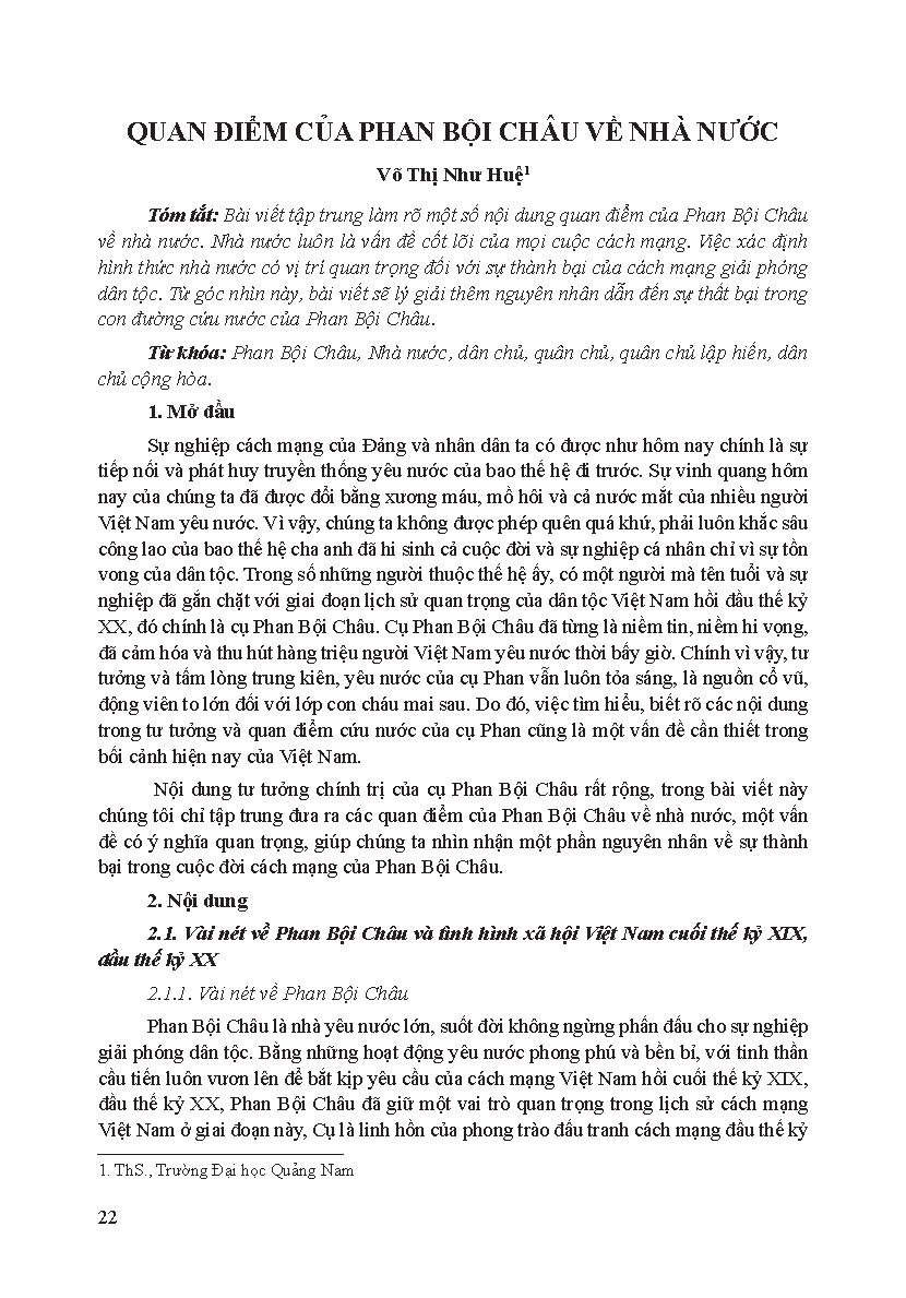 Quan điểm của Phan Bội Châu về nhà nước = Phan Boi Chau's viewpoint on state