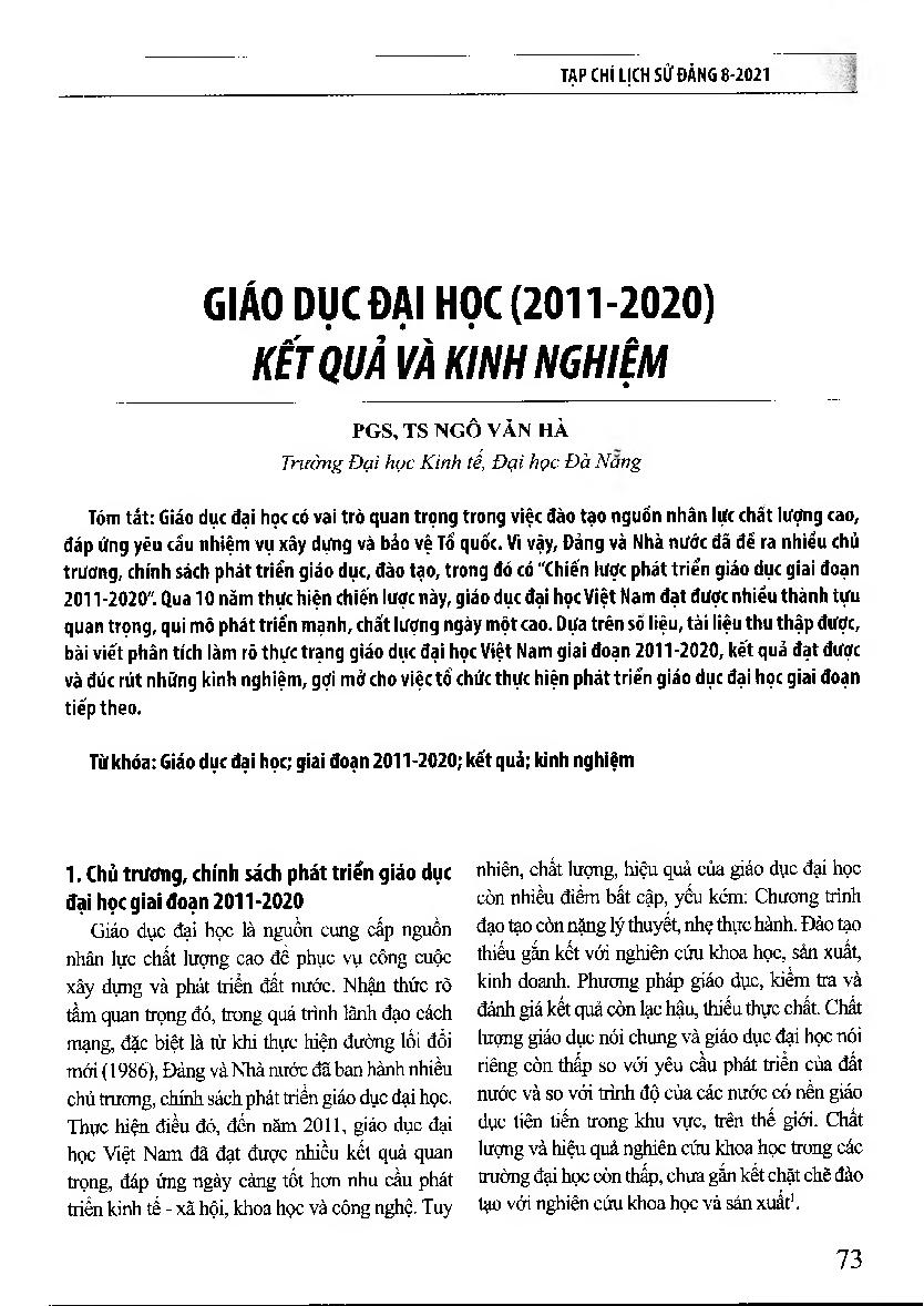 Giáo dục đại học (2011-2020) kết quả và kinh nghiệm