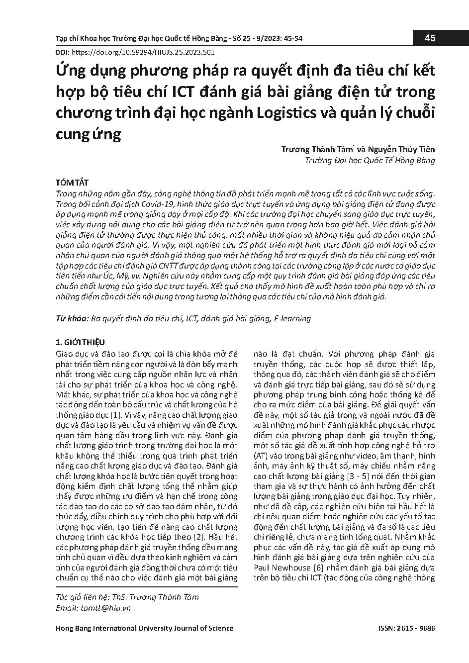 Ứng dụng phương pháp ra quyết định đa tiêu chí kết hợp bộ tiêu chí ICT đánh giá bài giảng điện tử trong chương trình đại học ngành Logistics và quản lý chuỗi cung ứng