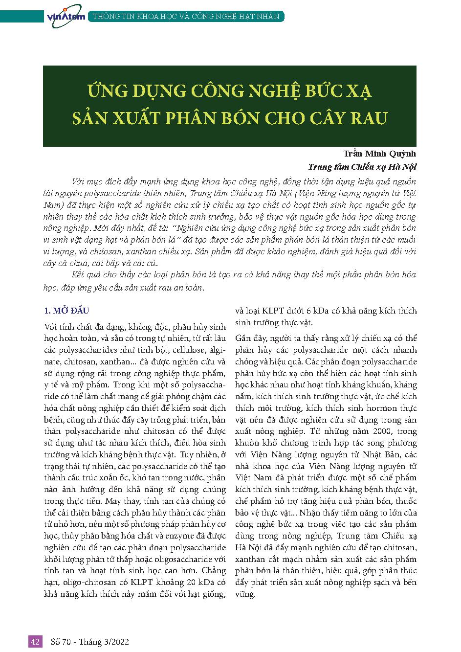 Ứng dụng công nghệ bức xạ sản xuất phân bón cho cây rau