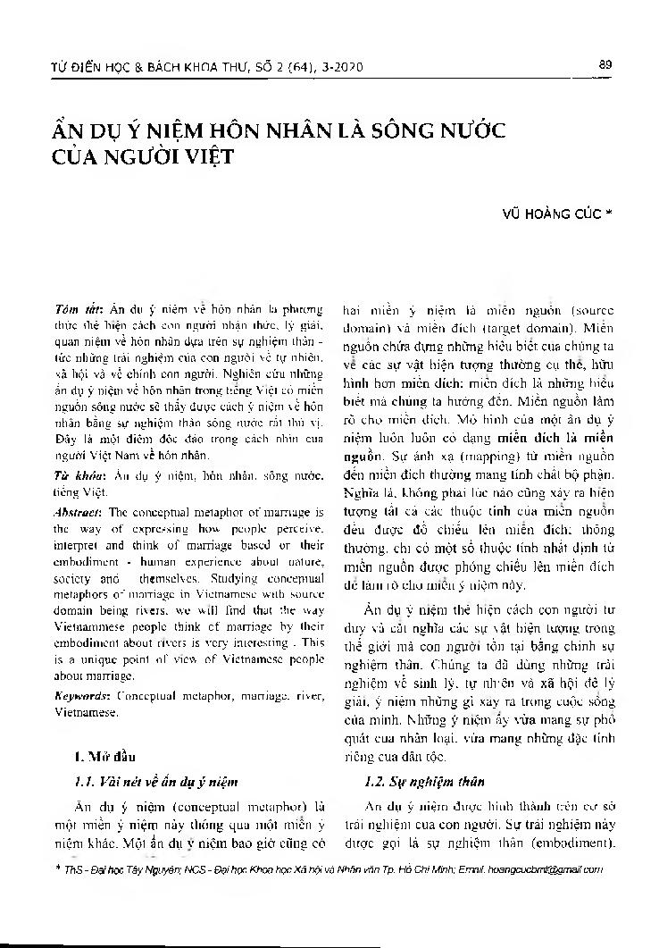 Ẩn dụ ý niệm hôn nhân là sông nước của người Việt = Vietnamese conceptual metaphor, marriage is rivers