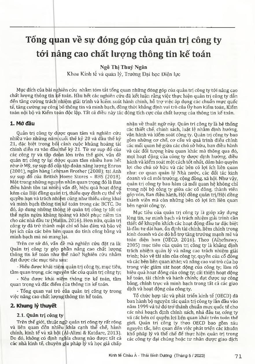 Tổng quan về sự đóng góp của quản trị công ty tới nâng cao chất lượng thông tin kế toán