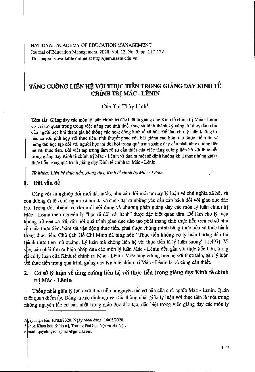 Tăng cường liên hệ với thực tiễn trong giảng dạy kinh tế chính trị Mác - Lênin = Enhancing case studies in teaching Marxism - Leninism political economics