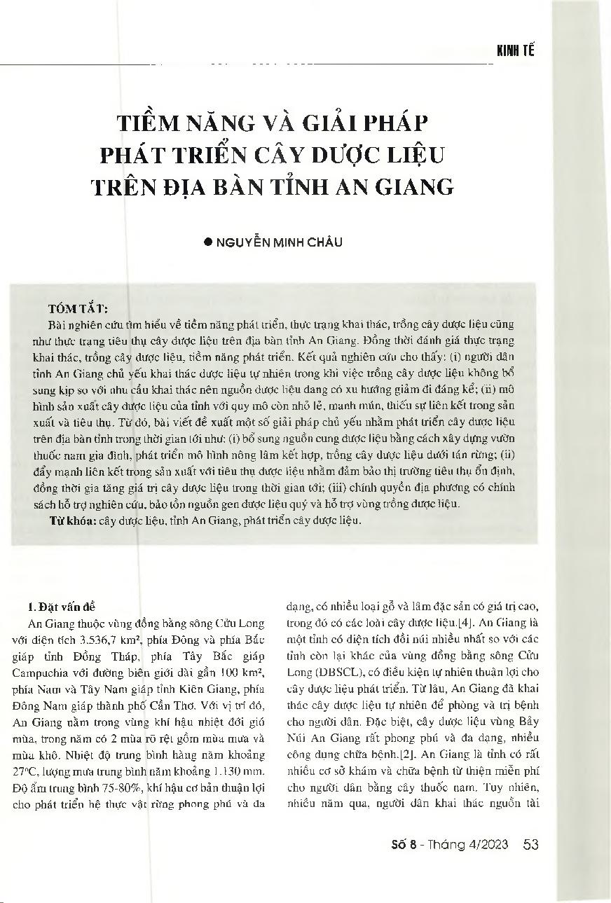 Tiềm năng và giải pháp phát triển cây dược liệu trên địa bàn tỉnh An Giang