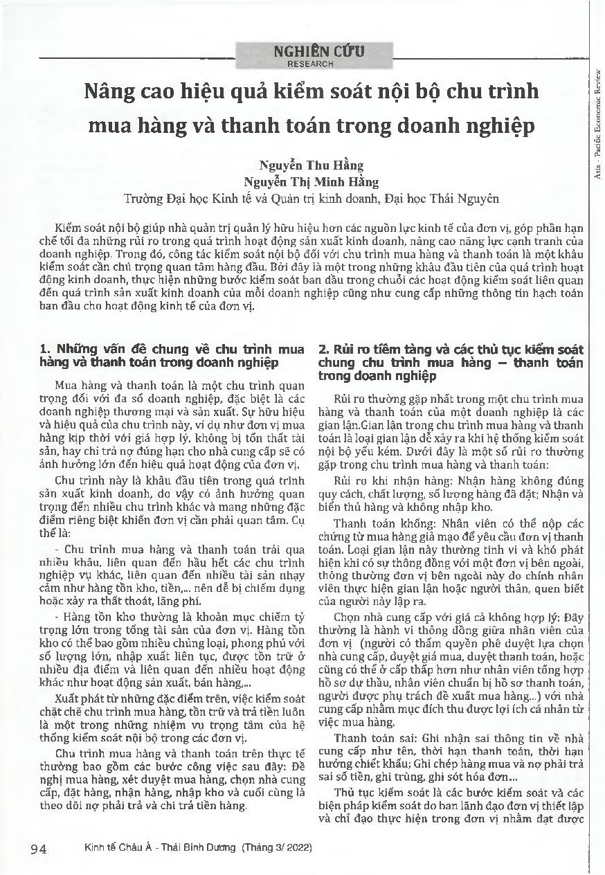 Nâng cao hiệu quả kiểm soát nội bộ chu trình mua hàng và thanh toán trong doanh nghiệp