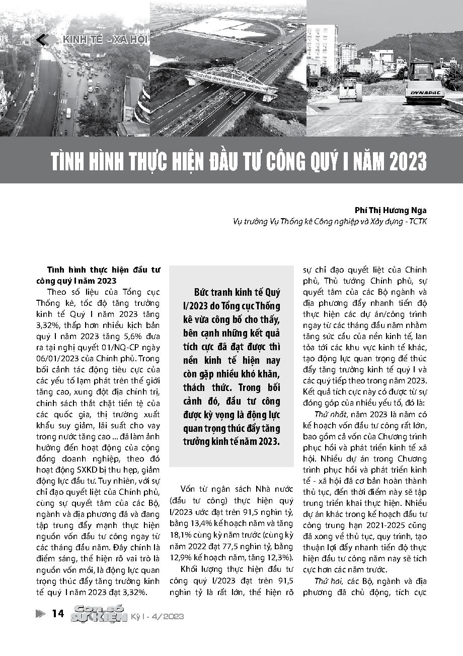 Tình hình thực hiện đầu tư công quý I năm 2023 = Status of public investment implementation in the first quarter of 2023