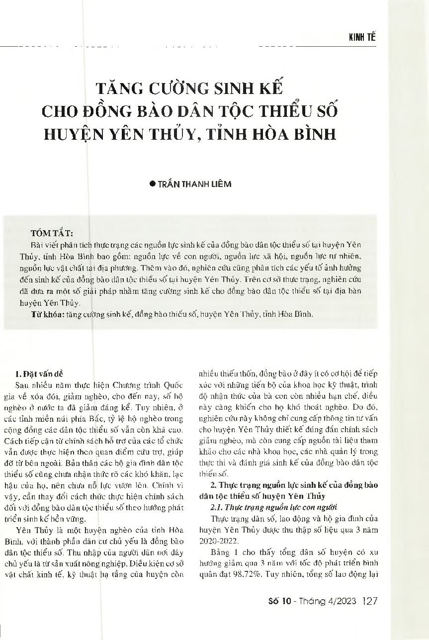 Tăng cường sinh kế cho đồng bào dân tộc thiểu số huyện Yên Thủy, tỉnh Hòa Bình