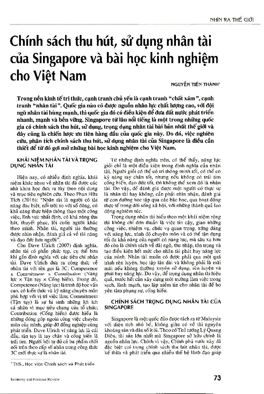 Chính sách thu hút, sử dụng nhân tài của Singapore và bài học kinh nghiệm cho Việt Nam