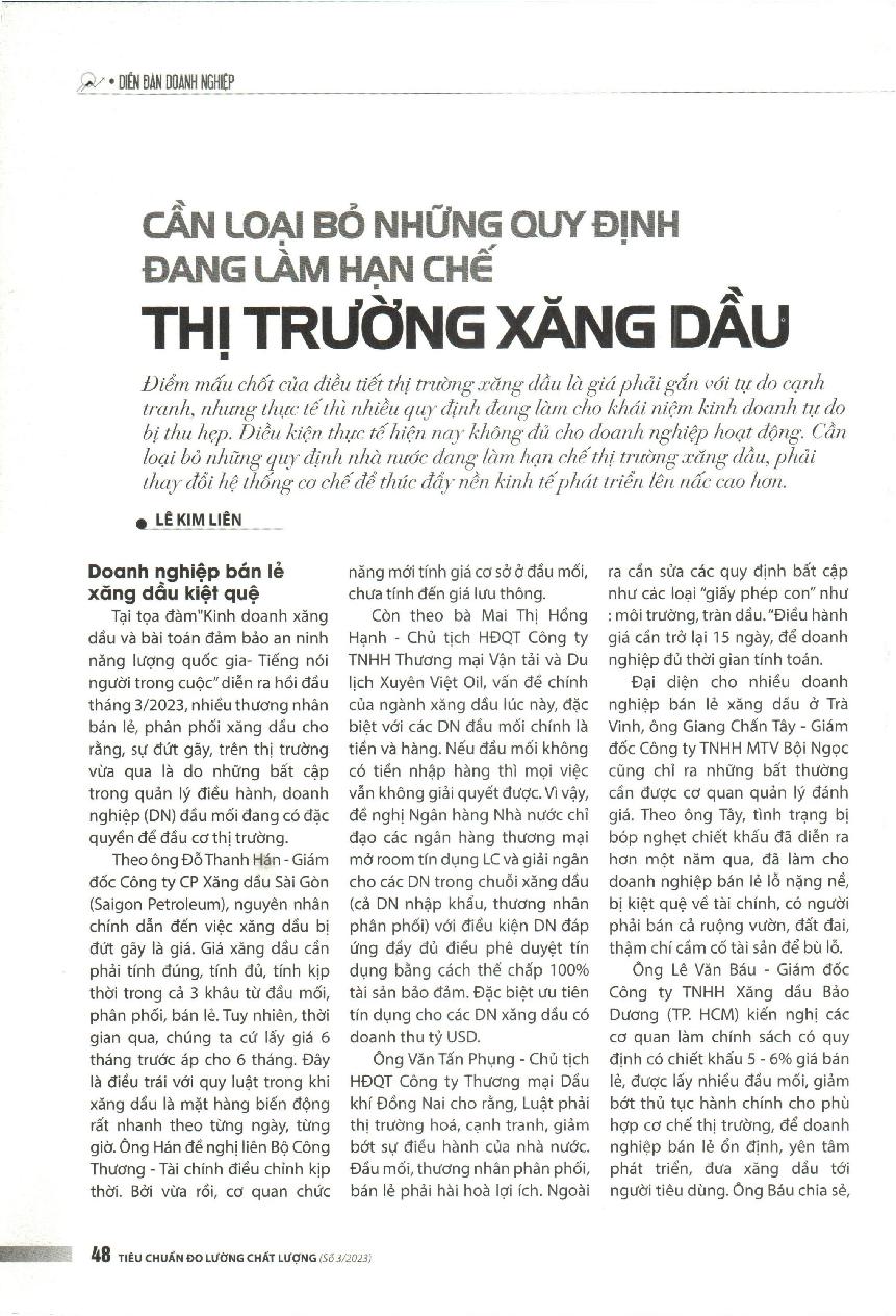 Cần loại bỏ những quy định đang làm hạn chế thị trường xăng dầu = It is necessary to remove regulations that are restricting the petroleum market