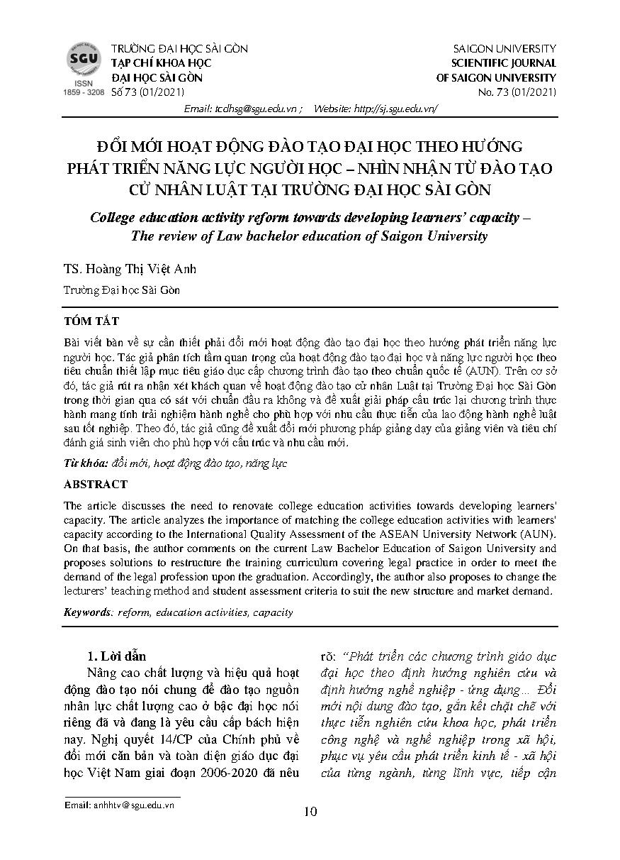 Đổi mới hoạt động đào tạo đại học theo hướng phát triển năng lực người học – Nhìn nhận từ đào tạo cử nhân Luật tại Trường Đại học Sài Gòn
