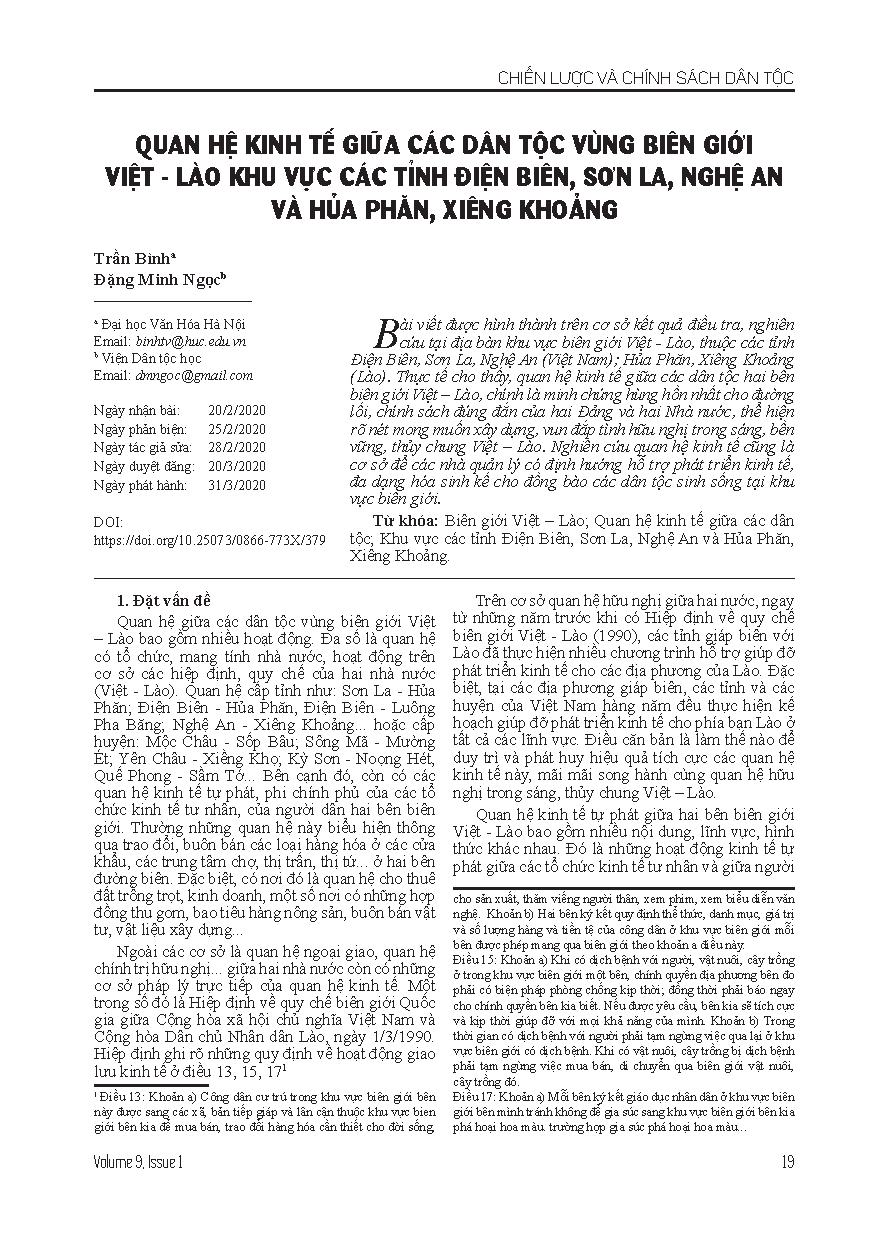 Quan hệ kinh tế giữa các dân tộc vùng biên giới Việt - Lào khu vực các tỉnh Điện Biên, Sơn La, Nghệ An và Hủa Phăn, Xiêng Khoảng = Economic relations among ethnic groups in Vietnam - Laos border areas in provinces of Dien Bien, Son La, Nghe An and Hua Phan, Xieng Khoang