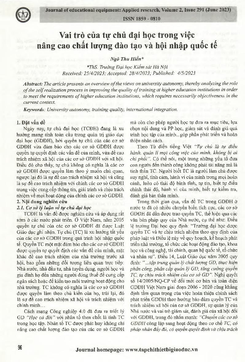 Vai trò của tự chủ đại học trong việc nâng cao chất lượng đào tạo và hội nhập quốc tế = The role of university autonomy in improving training quality and international integration