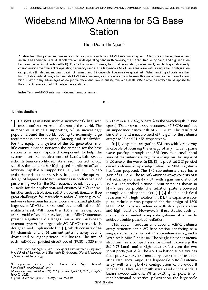 Ăng-ten MIMO băng rộng cho trạm gốc 5G = Wideband MIMO Antenna for 5G Base Station