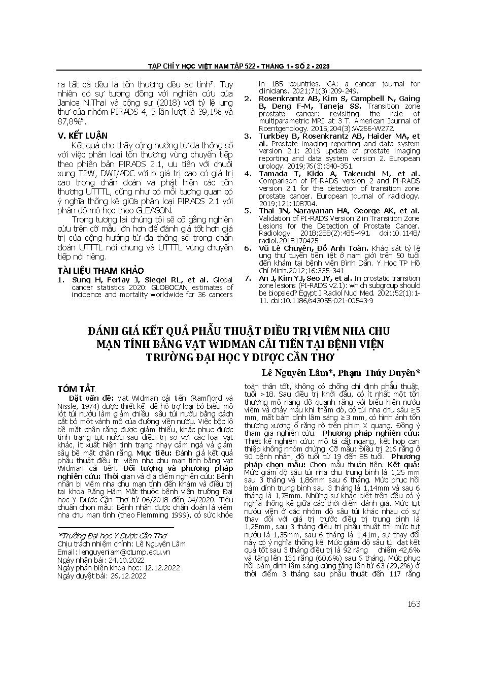 Đánh giá kết quả phẫu thuật điều trị viêm nha chu mạn tính bằng vạt Widman cải tiến tại Bệnh viện Trường Đại học Y dược Cần Thơ = Assessment of surgical results treatment of chronic chronic periodontitis with improved widman flap at cantho university of m