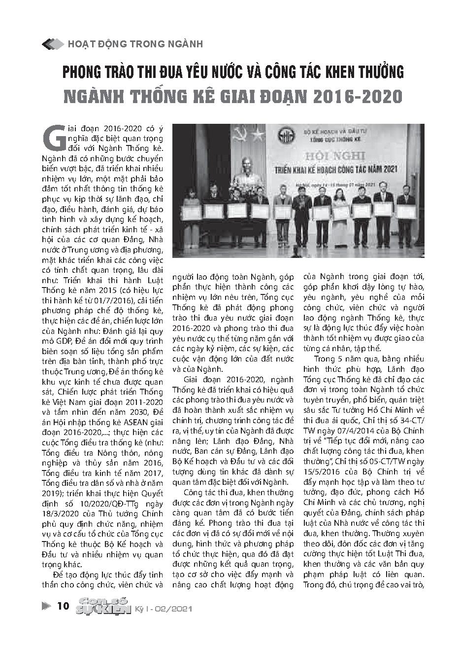 Phong trào thi đua yêu nước và công tác khen thưởng Ngành thống kê giai đoạn 2016-2020
