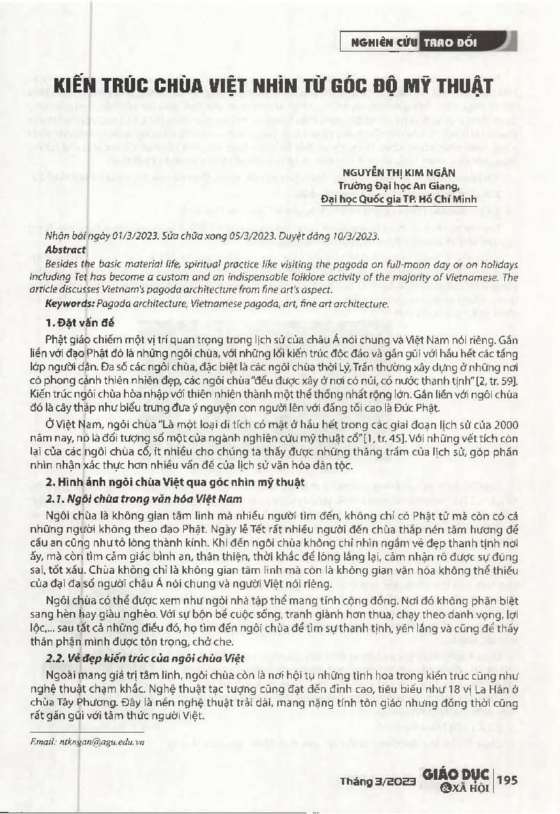 Kiến trúc chùa Việt nhìn từgóc độ mỹ thuật = Vietnam's pagoda architecture from fine art's aspect