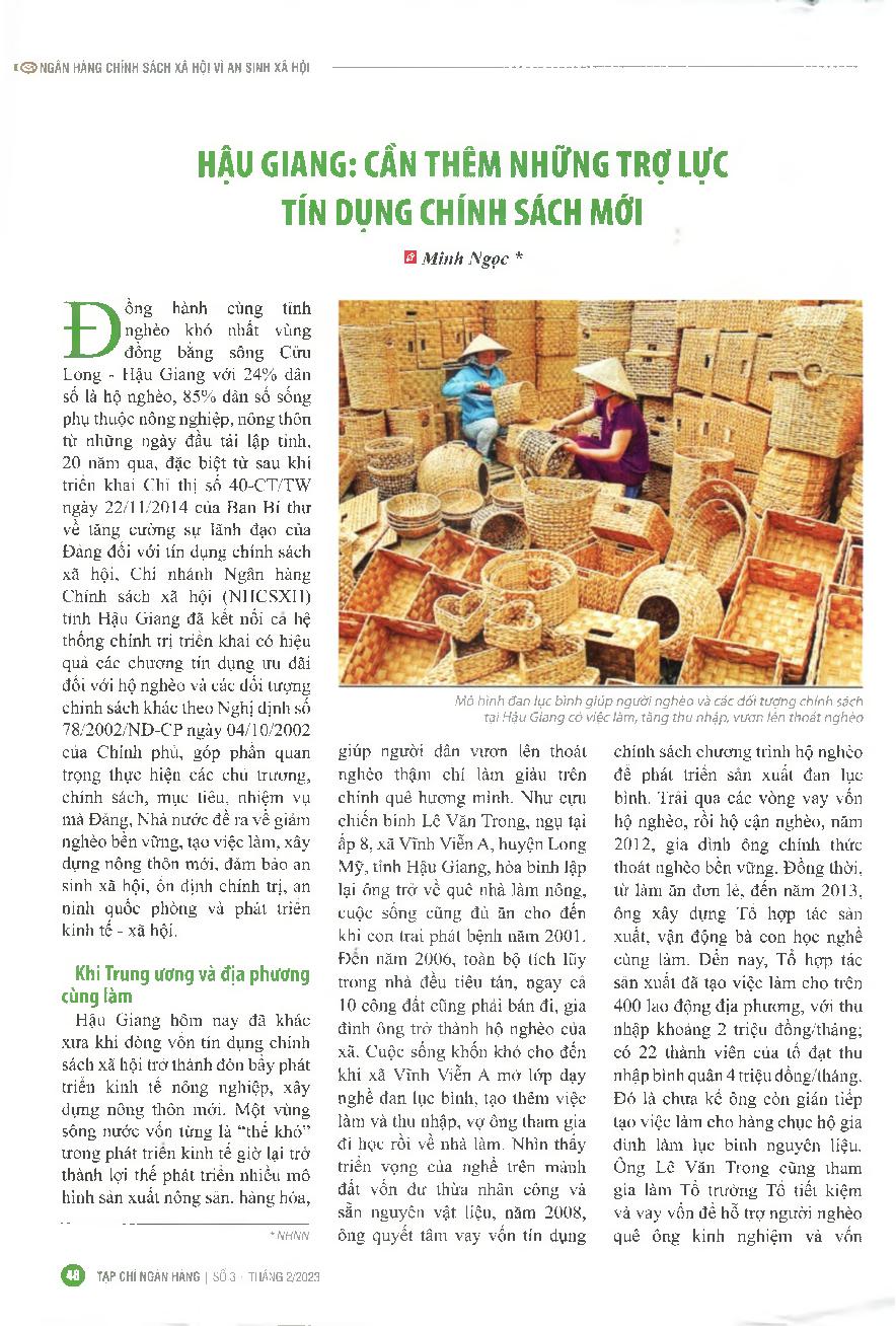Hậu Giang: Cần thêm những trợ lực tín dụng chính sách mới = Hau Giang: Need more support for new policy credit