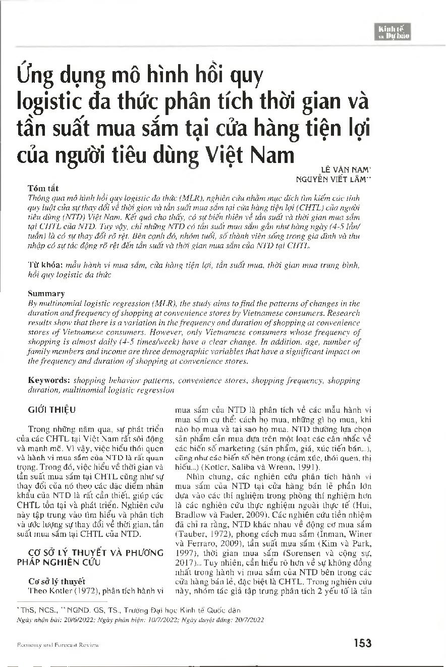 Ứng dụng mô hình hồi quy logistic đa thức phân tích thời gian và tần suất mua sắm tại cửa hàng tiện lợi của người tiêu dùng Việt Nam = Application of multinomial logistic regression to analyze the duration and frequency of shopping at convenience stores b
