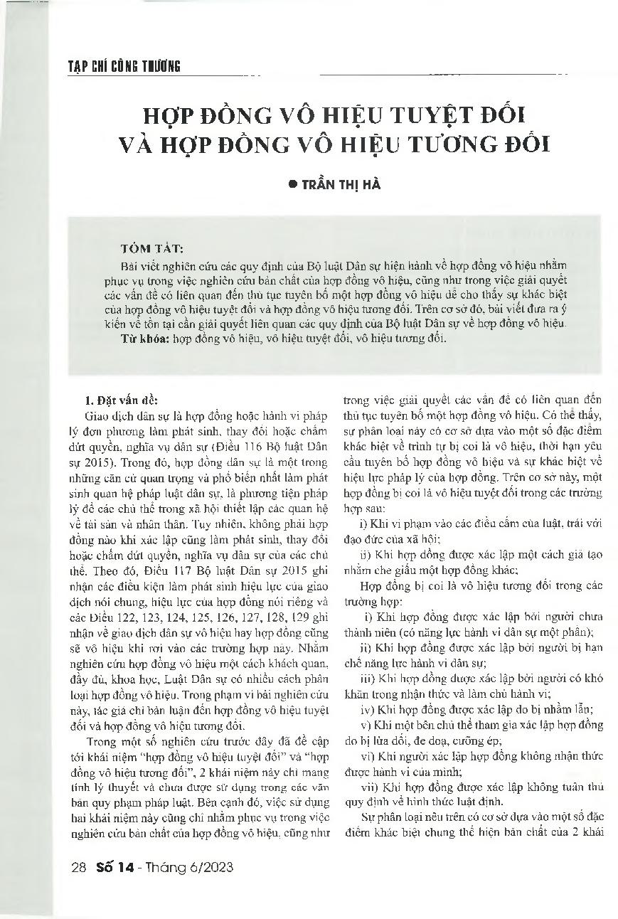 Hợp đồng vô hiệu tuyệt đối và hợp đồng vô hiệu tương đối