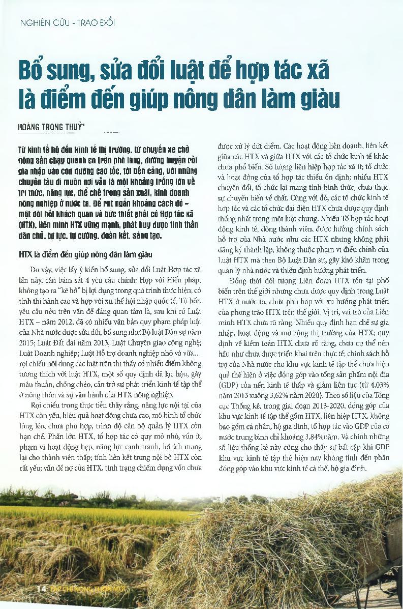Bổ sung, sửa đổi luật để hợp tác xã là điểm đến giúp nông dân làm giàu
