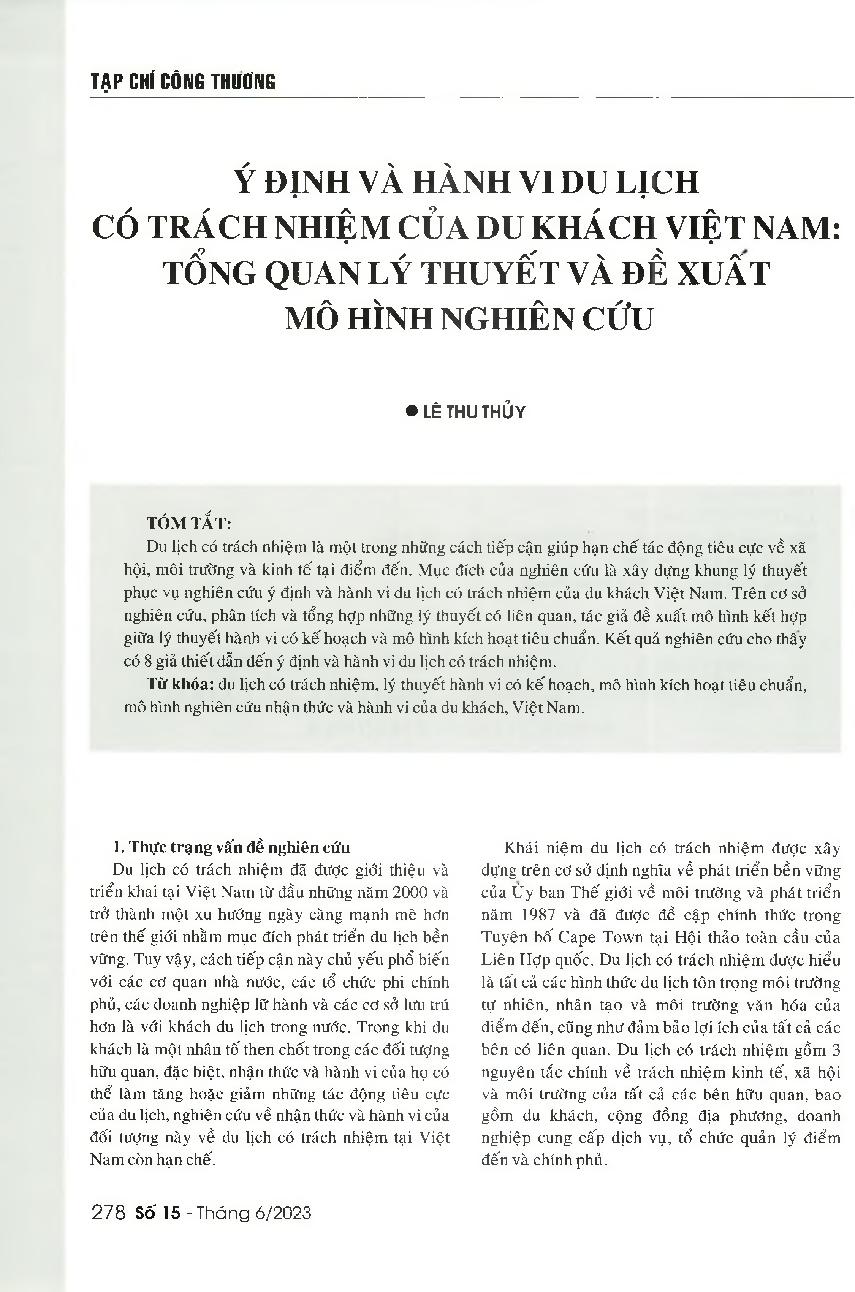 Ý định và hành vi du lịch có trách nhiệm của du khách Việt Nam: Tổng quan lý thuyết và đề xuất mô hình nghiên cứu