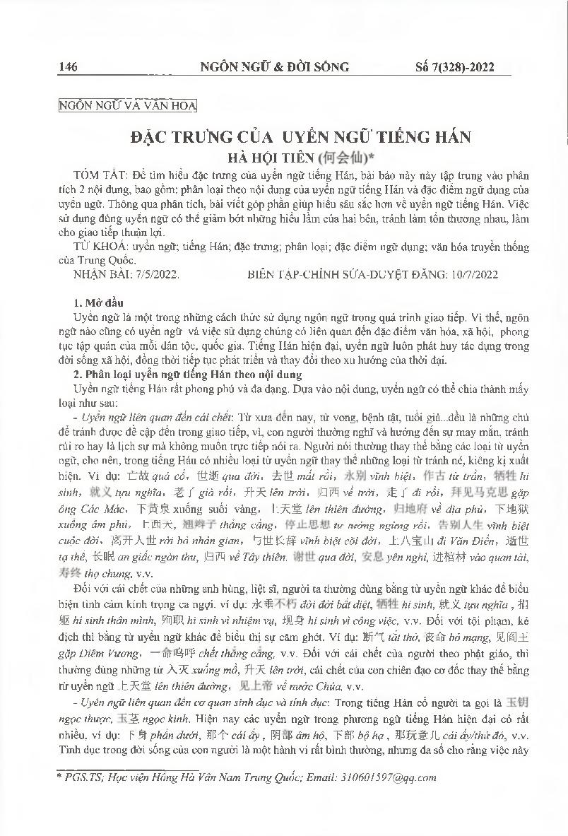 Đặc trưng của uyển ngữ tiếng Hán = Features of Chinese euphemisms