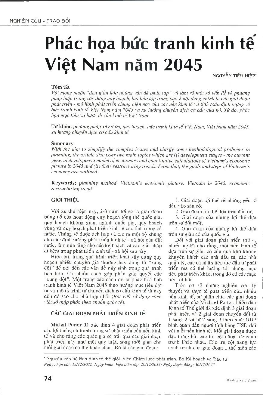 Phác họa bức tranh kinh tế Việt Nam năm 2045 = Sketching a picture of Vietnam's economy by 2045